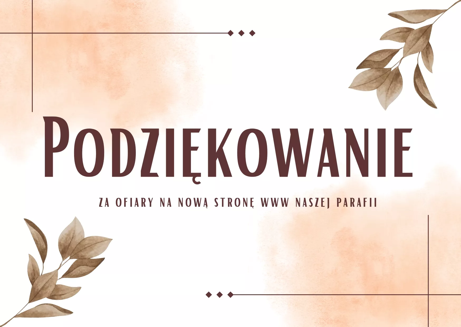 Dziękujemy serdecznie wszystkim anonimowym ofiarodawcom za ich hojne ofiary na budowę nowej strony naszej parafii! Wasze wsparcie jest dla nas nieocenione, a wasza życzliwość napawa naszą społeczność ogromną wdzięcznością. Dzięki waszej hojności możemy kontynuować naszą misję i stworzyć jeszcze piękniejsze miejsce wspólnego modlitewnego spotkania. Niech Bóg obdarza was swoim błogosławieństwem za wasze dobre serca!