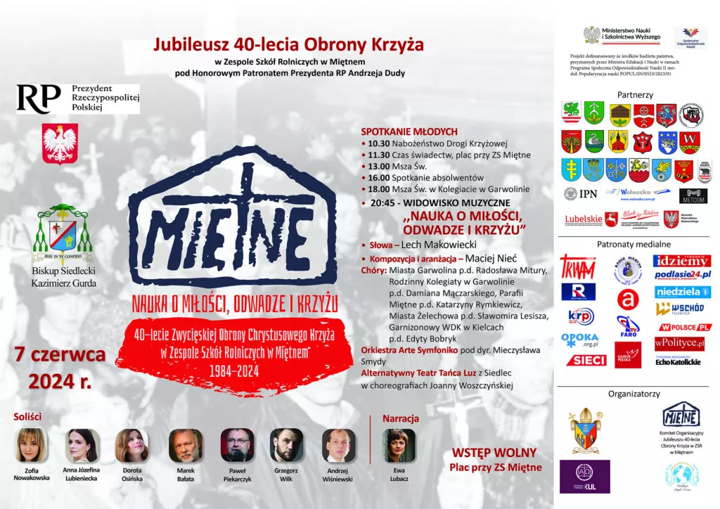 7 czerwca, odbędą się uroczystości związane z 40-leciem zwycięskiej obrony Krzyża w Zespole Szkół Rolniczych w Miętnem w powiecie garwolińskim. Program obchodów obejmuje spotkanie młodzieży, Eucharystię, spotkanie absolwentów oraz wieczorne widowisko muzyczne skomponowane specjalnie na tę okazję. Prezydent RP Andrzej Duda objął jubileuszowe uroczystości w Miętnem patronatem honorowym, podkreślając tym samym rangę wydarzenia.