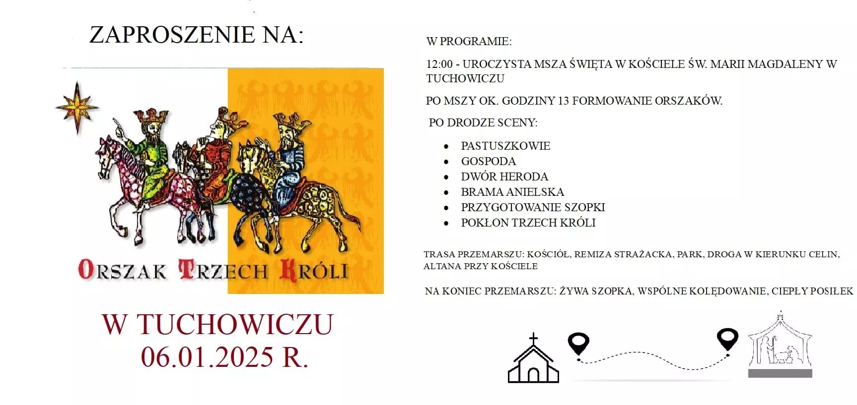 Zapraszamy do ich orszaków i w takich kolorach prosimy się ubrać (peleryna, koszulka, nakrycie głowy, chorągiewka, szalik).