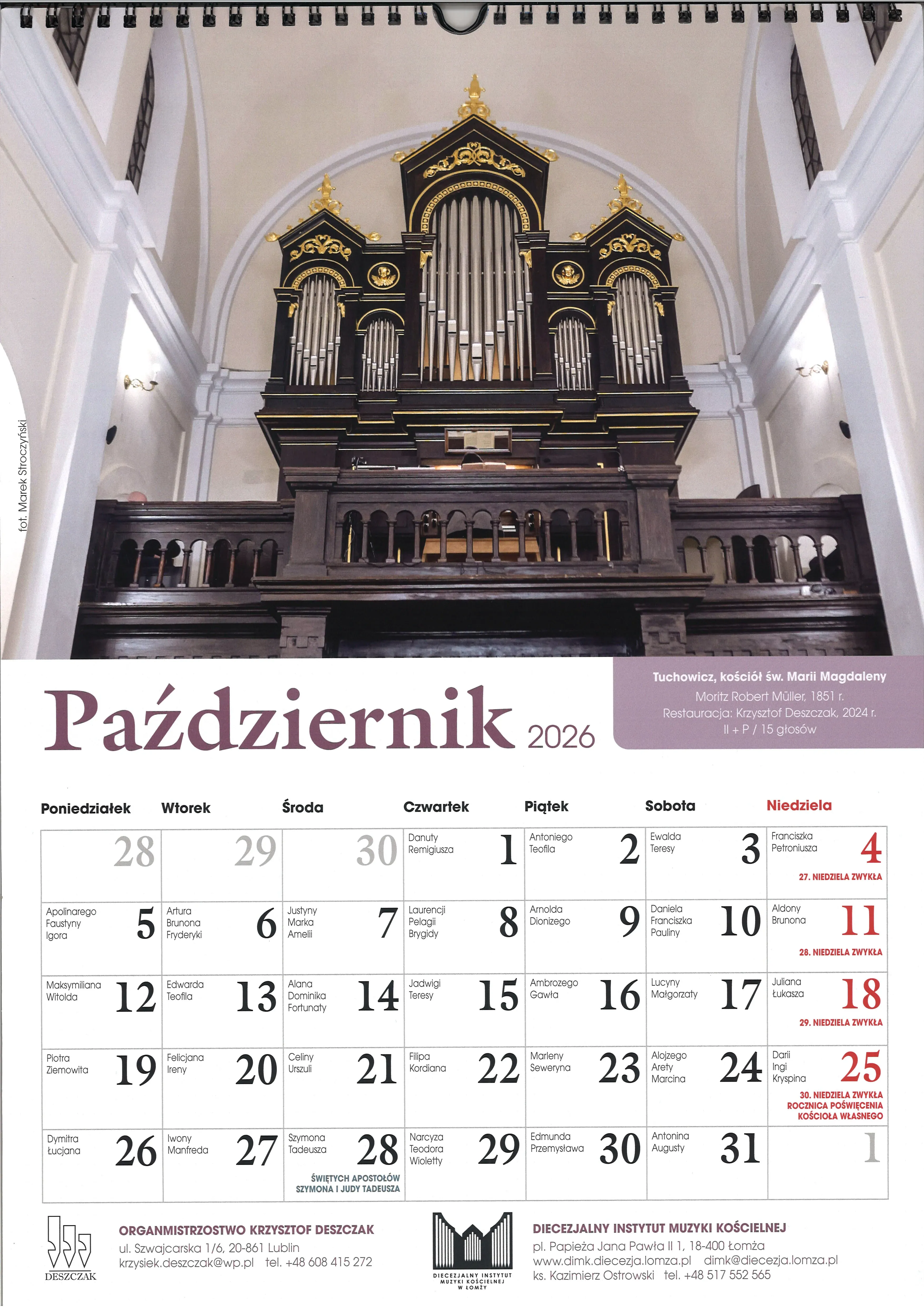 W kalendarzu można podziwiać nasze organy w miesiącu październiku.