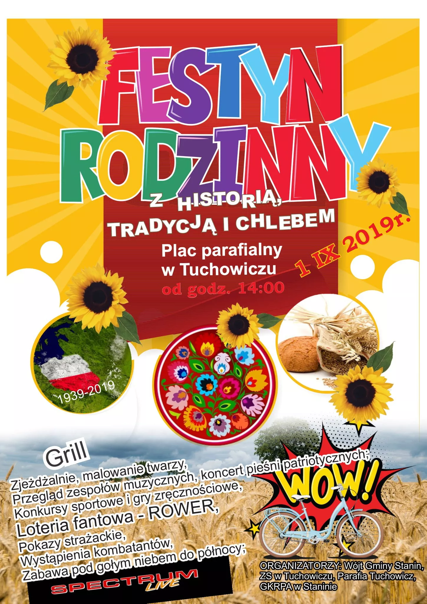 „Z historią, tradycją i chlebem” - pod tym hasłem mieszkańcy całej gminy Stanin w najbliższą niedzielę września będą bawić się na Festynie Rodzinnym w Tuchowiczu. Sołectwa już przygotowują swoje stoiska, na których będzie można spróbować lokalnych specjałów. Organizatorzy: Wójt Gminy Stanin, ZS w Tuchowiczu, parafia Tuchowicz i GKRPA w Staninie zapowiadają wiele atrakcji dla dużych i małych. Będą wśród nich: przejażdżki quadami, zjeżdżalnie, malowanie twarzy, rodeo, loteria fantowa (wygrana). Konkursy sportowe i gry zręcznościowe.