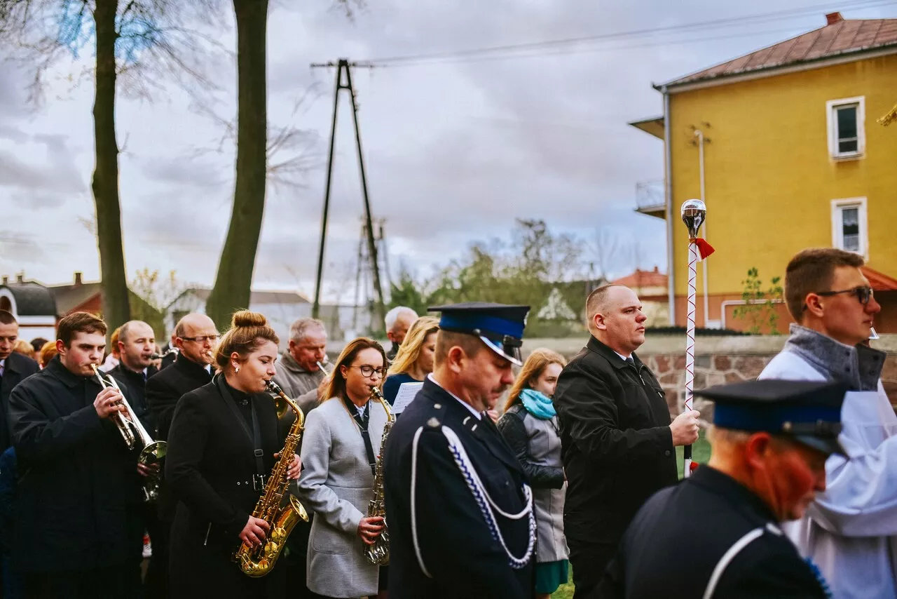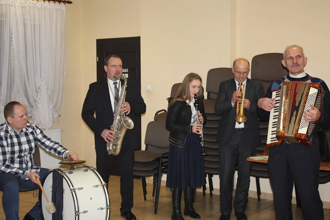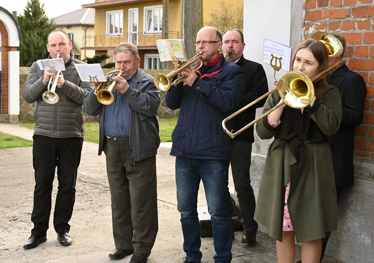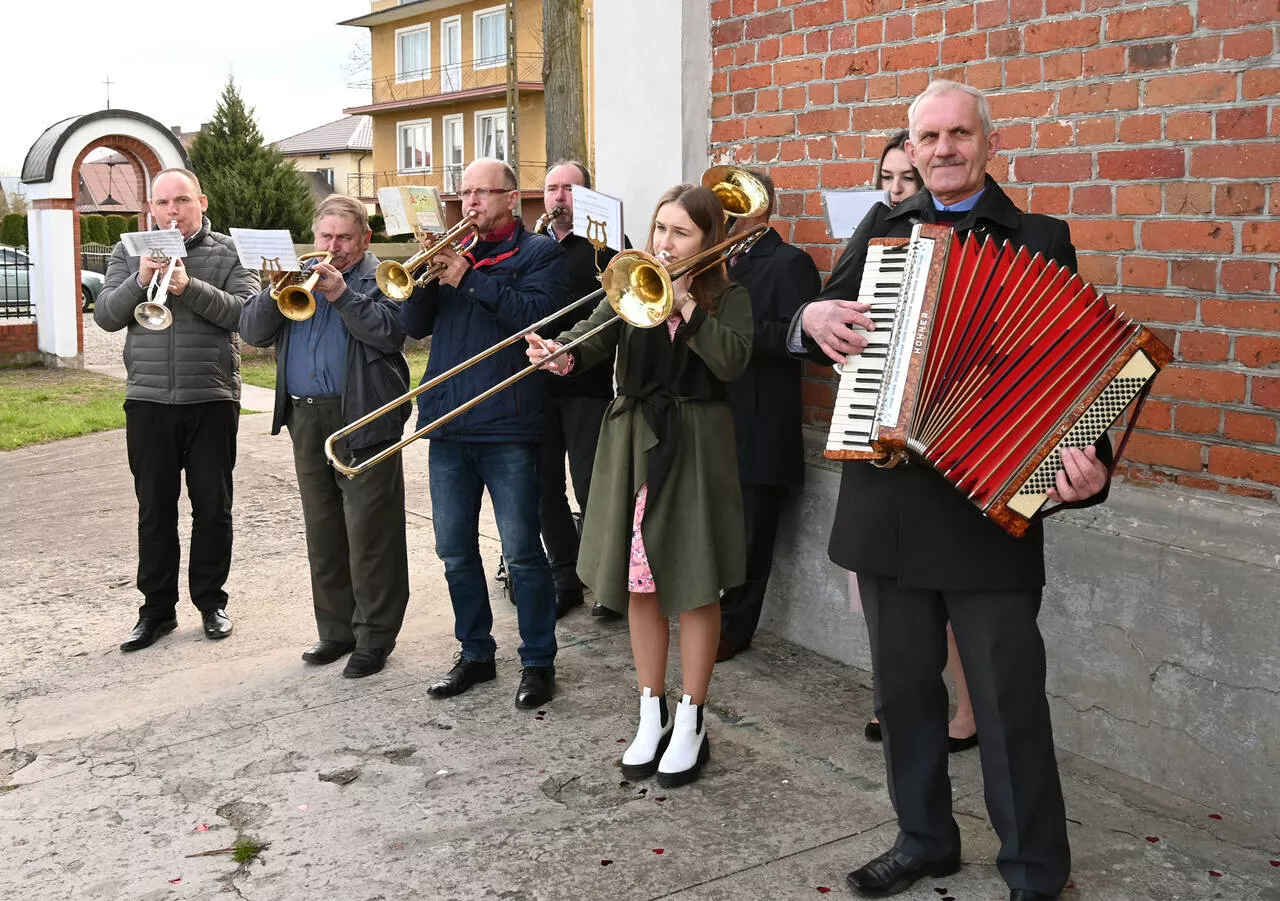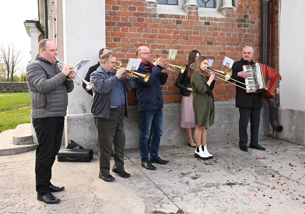 Na strychu kościoła p. organista śp. Jan Kucharski znalazł blaszane instrumenty dęte. Wraz ze śp. Janem Siwickim postanowili zawieźć trąbki do remontu w Lublinie. Okazało się, że instrumenty nadają się tylko do wyrzucenia. Ponoć miały spocząć na dnie rzeki pod mostemJ, aIe Siwicki uparł się i przywiózł je do domu z powrotem.