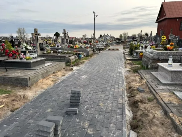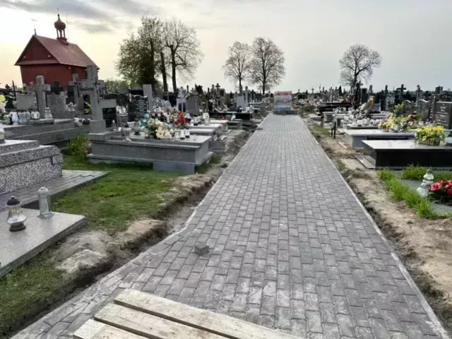 Nowa kostka w wybranych obszarach cmentarza