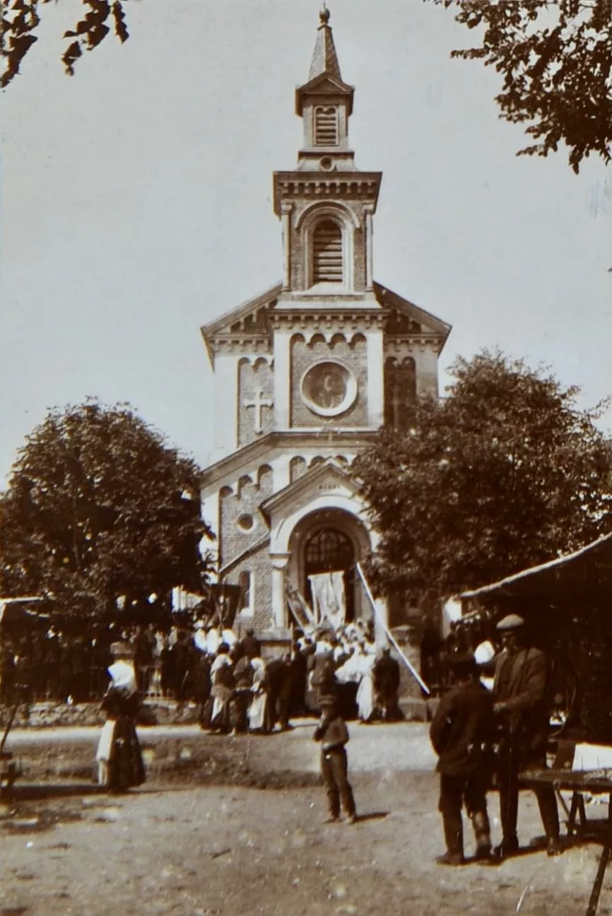W 1856 roku proboszczem parafii został zaledwie 35-letni ks. Adam Byszewski. Dobra współpraca między księdzem i Hemplami przyczyniła się do restauracji kościoła w 1857 roku. Niestety po niefortunnej burzy 1865 roku, która powaliła na dach kościoła drzewo, nabożeństwa zostały przeniesione do kaplicy cmentarnej. Naprawy zostały zakończone w 1871 roku. Losy drewnianego kościoła zakończył pożar, który strawił wyremontowany kościół 3 czerwca 1873 roku. Zniszczeniu uległa także plebania. Nabożeństwa zostały ponownie przeniesione do kaplicy na cmentarzu a ksiądz zamieszkał w piwnicy.