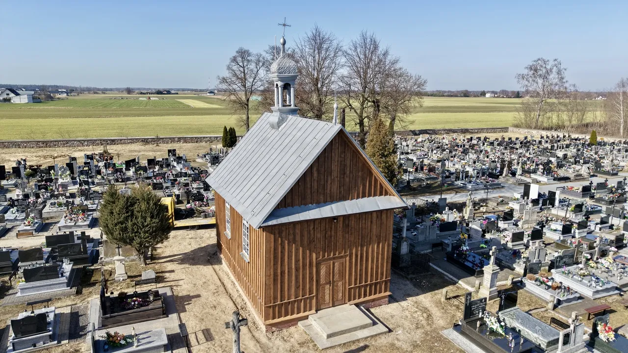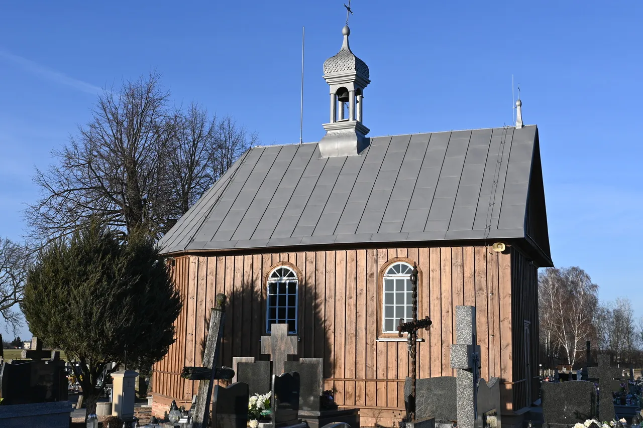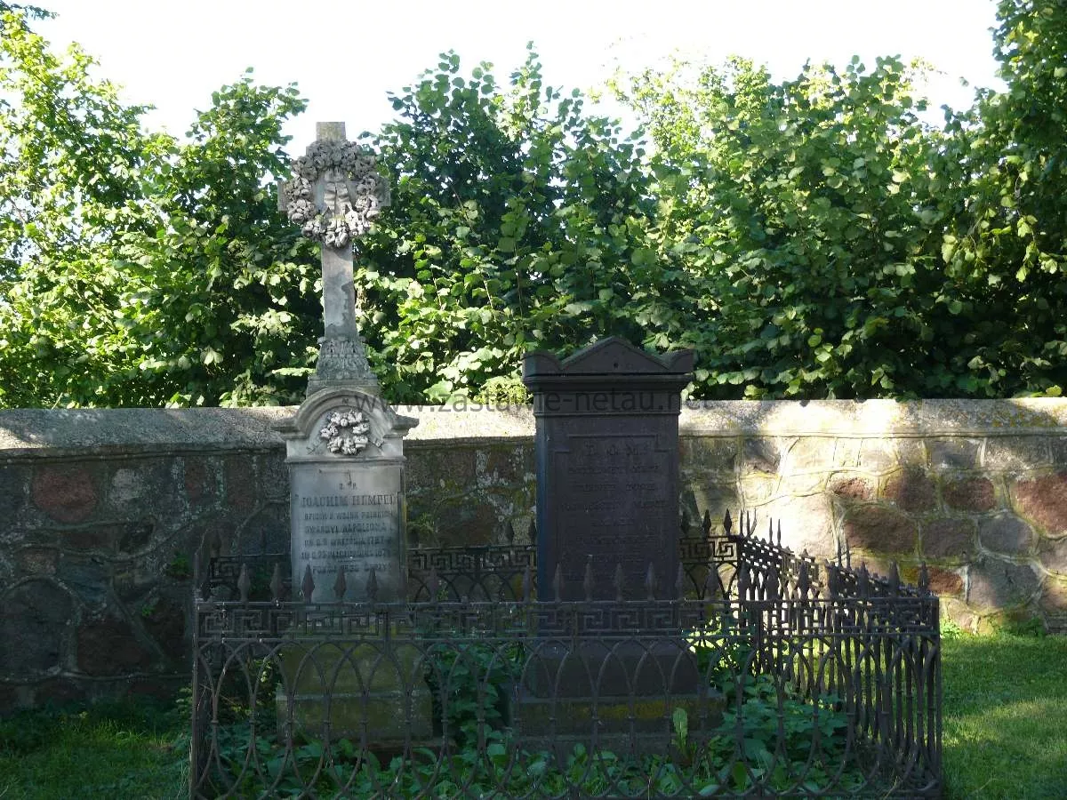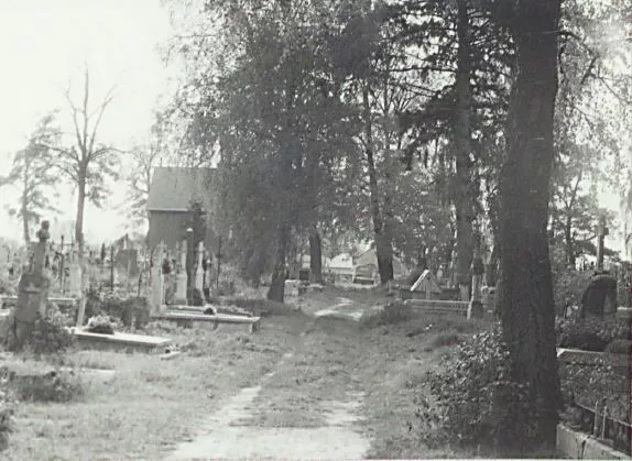 Równocześnie pochówków dokonywano na cmentarzy przykościelnym. Istaniły tam conajmniej 3 rzędy grobów. Do dziś dnia zachowały się 3 duże groby: Rozalii Hemplowej z Dmochowskich, Joachima Hempla i prawdopodobnie Anastazji Sosnowskiej z Dmochowskich.