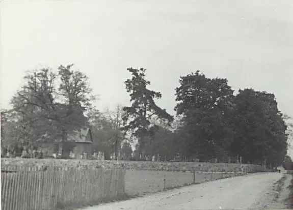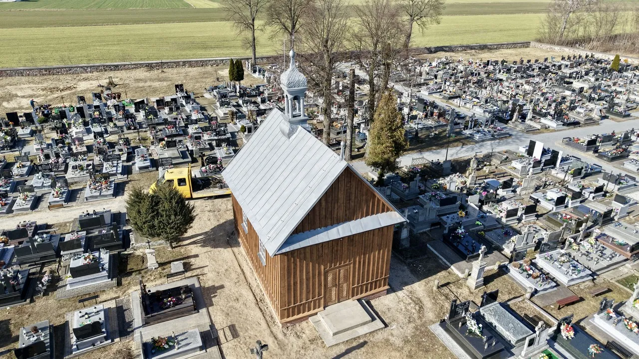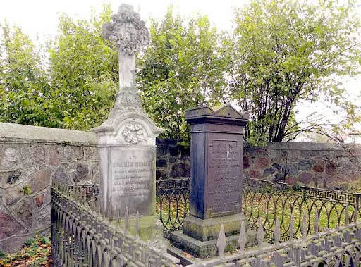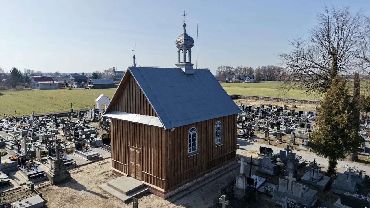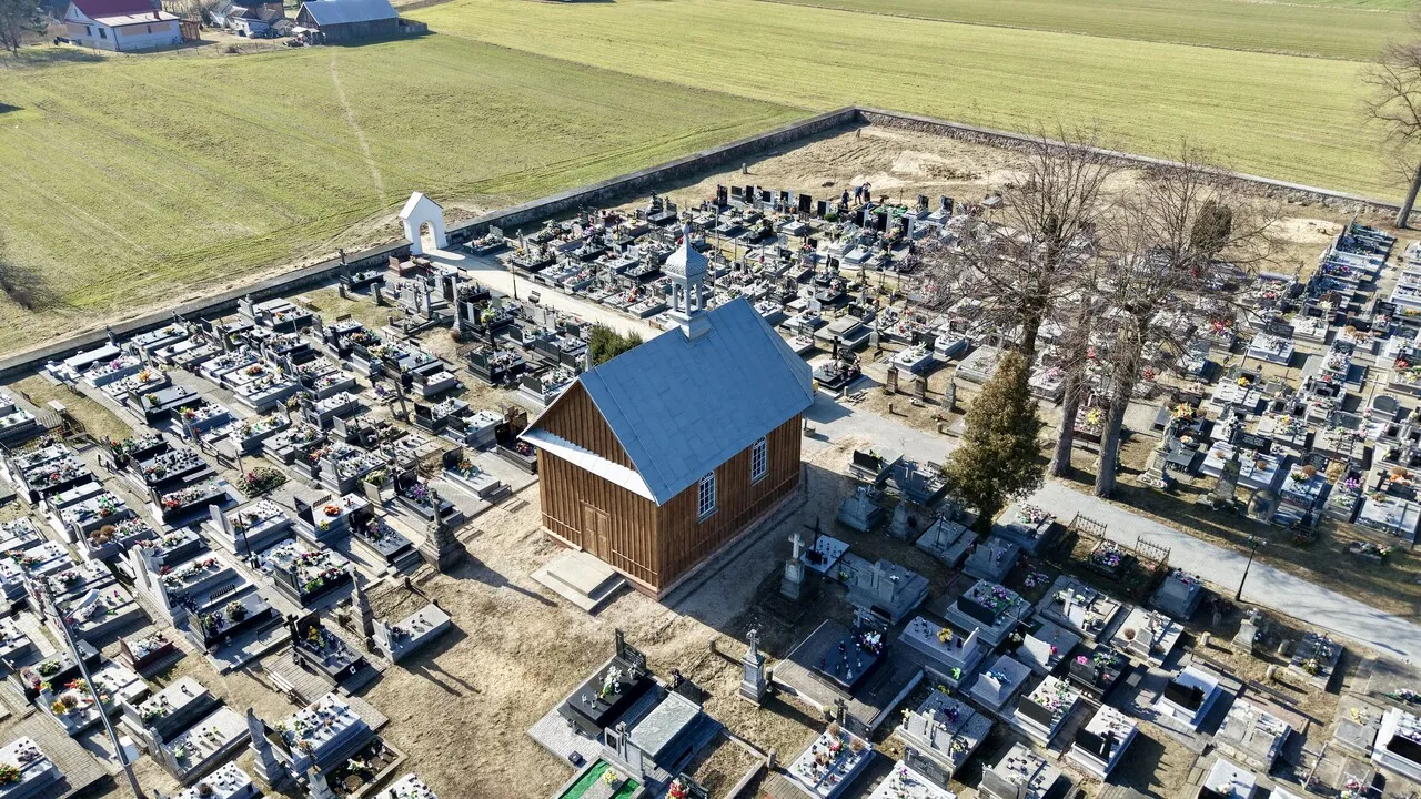Równocześnie pochówków dokonywano na cmentarzy przykościelnym. Istaniły tam conajmniej 3 rzędy grobów. Do dziś dnia zachowały się 3 duże groby: Rozalii Hemplowej z Dmochowskich, Joachima Hempla i prawdopodobnie Anastazji Sosnowskiej z Dmochowskich.