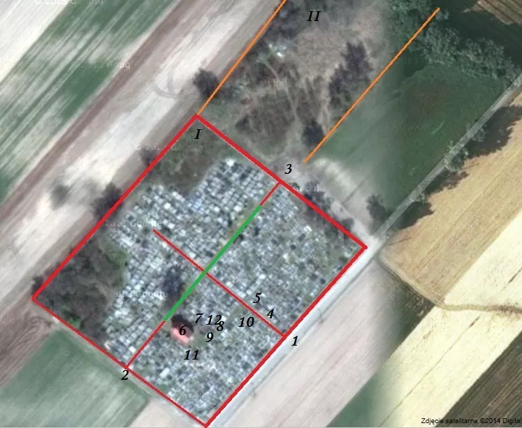 Współcześnie cmentarz można podzielić na kilka sektorów. Od dwóch bocznych bram przez środek niekropolii przebiega aleja, przy której znajduje się większość grobów osób zasłużonych dla parafii oraz poległych w II wojnie światowej.